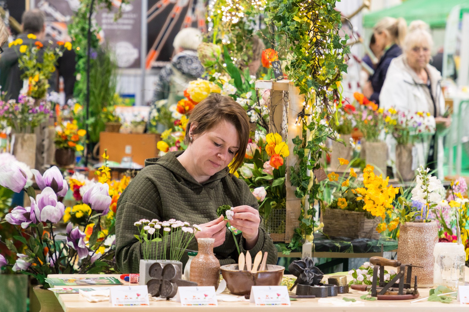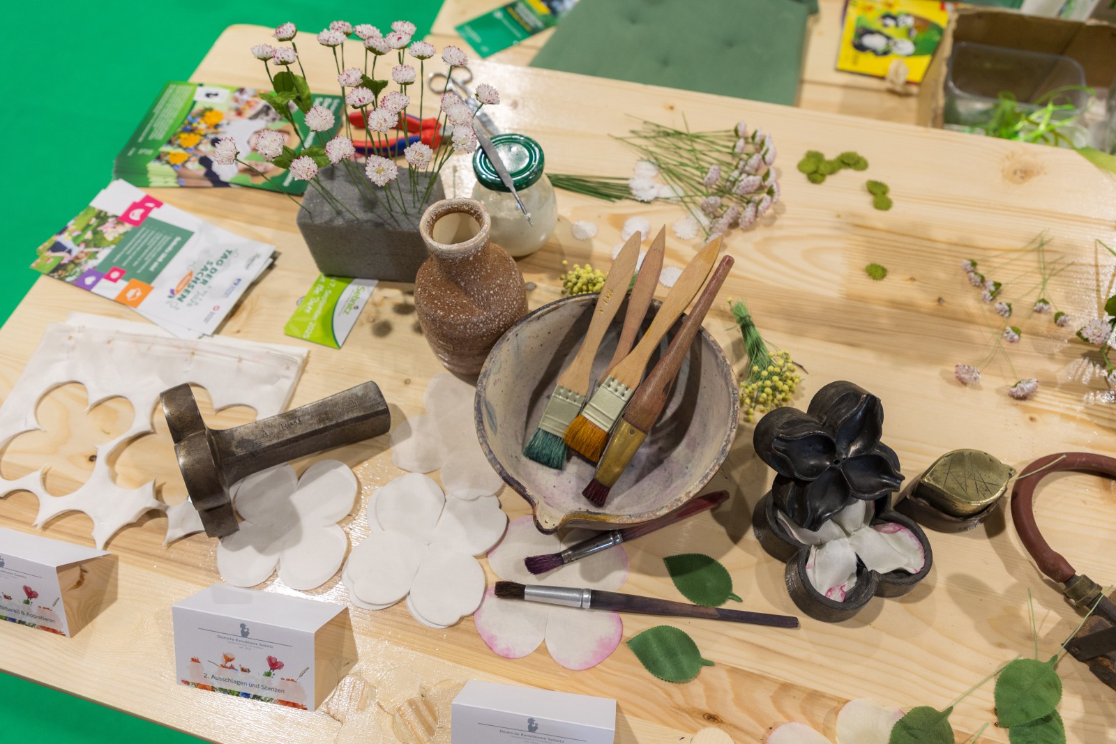 Auch 2026 ist die Sebnitzer Manufaktur Haus der Deutschen Kunstblume wieder auf dem Areal der Kleingärtner vertreten. Mit einem üppig blütenbestückten Stand ergänzt sie die natürliche Blütenpracht der Messe auf besondere Weise und wirbt zugleich für Sebnitz und das traditionsreiche Kunstblumenhandwerk. Interessierte können den Kolleginnen direkt bei der Herstellung der Kunstblumen über die Schulter schauen und so auch außerhalb Sebnitz einen lebendigen Einblick in die filigrane Handarbeit gewinnen.